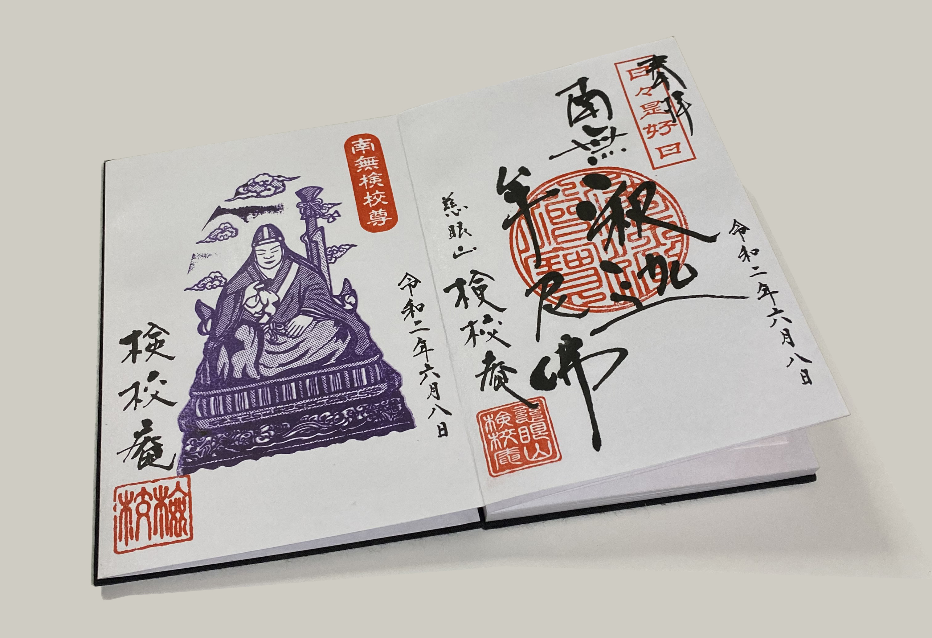 検校堂の御朱印は、検校尊者(眼神)の印影と、「南無検校尊」(検校尊者を心の拠り処と致します)という印が押されています。